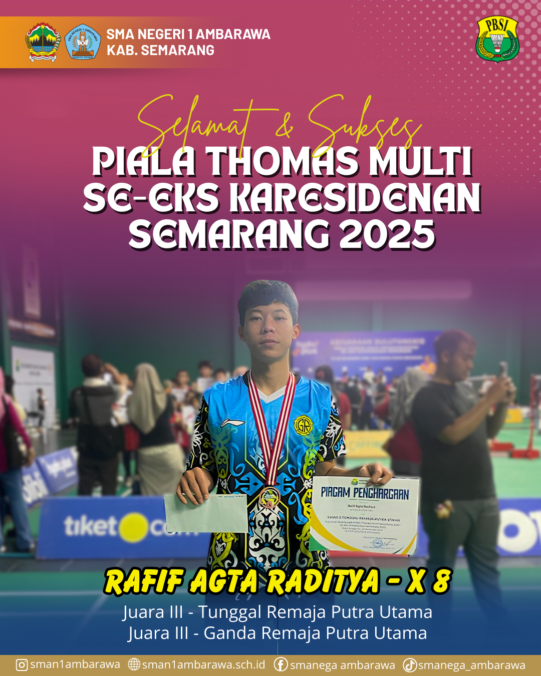 JUARA III - TUNGGAL REMAJA PUTRA UTAMAJUARA III - GANDA REMAJA PUTRA UTAMA PIALA THOMAS MULTI SE EKS KARESIDENAN SEMARANG TAHUN 2025 RAFIF AGTA RA...